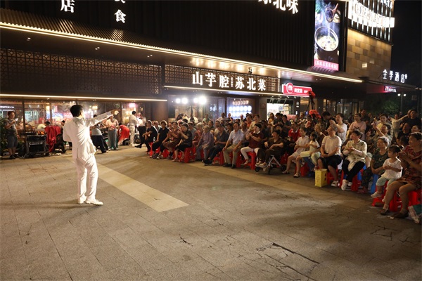 “瀆上·老西門”新時代文明實踐街區(qū)自開街以來一直是市民們享受夜間文化生活的新潮聚集地。入夏后,鹽都區(qū)精準對接群眾需求,因地制宜組織了一系列高顏值、高品位、高質量的夜間文明實踐活動。“登瀛老茶館”安排了各類經典劇目,讓喜歡傳統(tǒng)戲曲的群眾過足癮;露天劇場喚起大家童年美好記憶,同時展示了中國幾代人拼搏奮斗的記憶;騰飛書局擁有豐富的閱讀資源開展全民閱讀,積極打造本地文化名片。