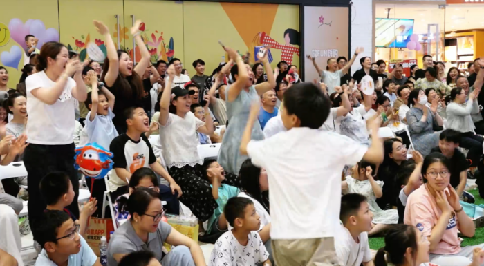 6月28日,鹽都萬達(dá)廣場的一樓中庭化作沸騰的綠茵戰(zhàn)場,300平方米的超清巨幕上清晰展現(xiàn)球員們的每一次拼搶、每一腳射門,現(xiàn)場座無虛席,球迷們目不轉(zhuǎn)睛緊盯賽況。隨著比賽進(jìn)入白熱化,助威聲、歡呼聲如浪潮翻涌,沉浸式觀賽體驗(yàn)將賽場的熱血與激情完美復(fù)刻。