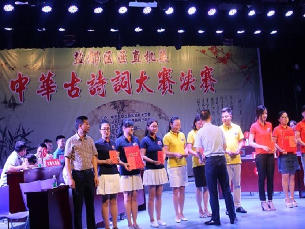 由鹽都區(qū)委區(qū)級機(jī)關(guān)工委、區(qū)文廣新局聯(lián)合舉辦的區(qū)直機(jī)關(guān)中華古詩詞大賽決賽,于7月7日下午在鹽都區(qū)文化館百姓劇場舉行。