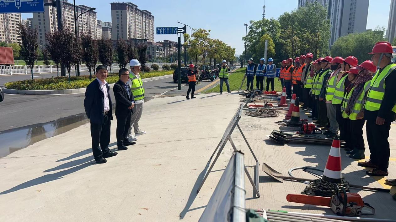 本次演練設(shè)定了臺風過后樹木倒伏、市政積水等險情背景,巡查人員發(fā)現(xiàn)問題后,第一時間匯報指揮部,指揮部立即啟動應(yīng)急預(yù)案,應(yīng)急隊伍在周邊設(shè)置防護安全措施,引導行人車輛通行,同時對倒伏樹木、積水路段進行全面檢查,做好后續(xù)疏通恢復(fù)。