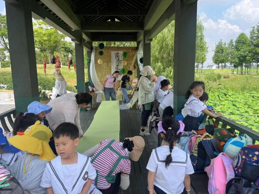 6月6日上午,寶福娃幼兒園在蟒蛇河水上文化生態(tài)廊道開展“荷你過端午”主題活動(dòng),讓孩子們?cè)隍吆有沱愶L(fēng)光中體驗(yàn)有香氣、有色彩的端午習(xí)俗。