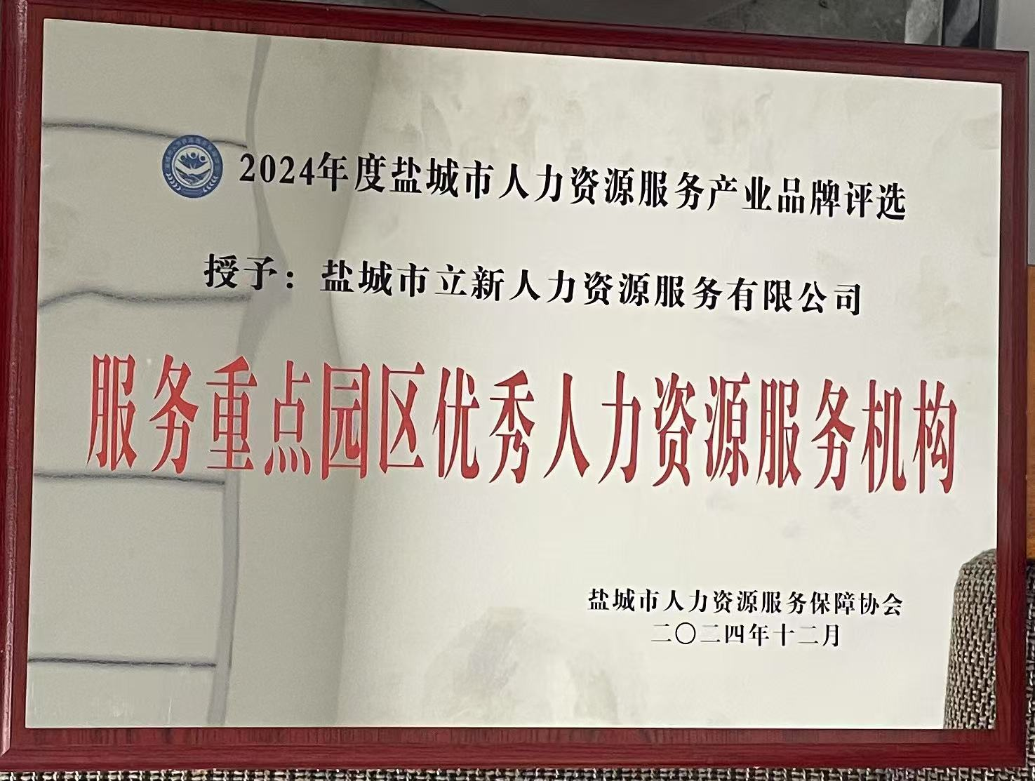 近日,鹽城市人力資源協(xié)會下發(fā)通知,鹽城市立新人力資源服務(wù)有限公司憑借其卓越表現(xiàn),順利獲得2024年度“服務(wù)重點(diǎn)園區(qū)優(yōu)秀人力資源服務(wù)機(jī)構(gòu)”的表彰。