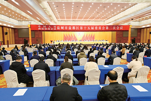 1月2日上午,政協(xié)鹽城市鹽都區(qū)第十五屆委員會第二次會議在東方玄武大酒店開幕。記者丁曉嵐嵇星攝
